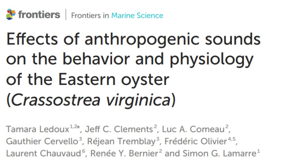 A huge congratulations goes out to master’s student Tamara Ledoux on her first scientific publication! The paper, published last month in Frontiers in Marine Science, is based on work she conducted during her BSc honours research at the Université de Moncton regarding the impacts of anthropogenic sounds on the behaviour and physiology of eastern oysters.