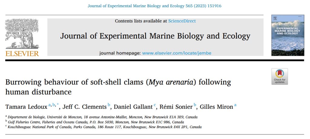 Jeff recently published a book chapter with his former PhD supervisor (Heather Hunt) on climate change impacts to the soft-shell clam, Mya arenaria.