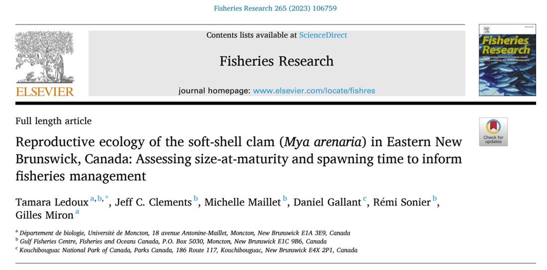 This chapter studied the reproductive ecology of soft-shell clams in Kouchibouguac National Park.