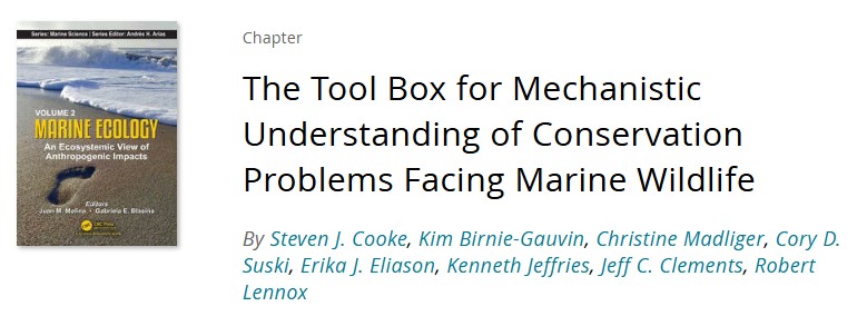 Jeff recently co-authored a book chapter with a diverse array of colleagues from Canada and the USA providing an overview of a “conservation physiology toolbox” than can aid in generating a mechanistic understanding of conservation problems facing contemporary marine wildlife.